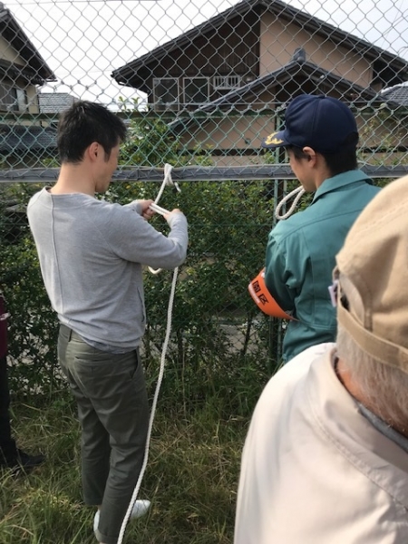2019年度防災訓練 2019年11月11日 10月27日(日)に、2019年度防災訓練を行いました。 今年は、各丁別に4か所を避難場所として、避難後防災会の皆さんの指揮による体験コーナーで避難時に必要な事を学びました。 体験は、簡易トイレの組み立て体験、簡易担架の作り方と搬送体験、ロープの結び方体験、炊き出し体験です。