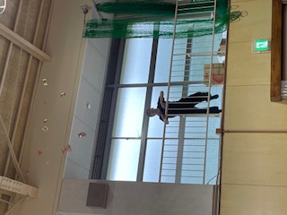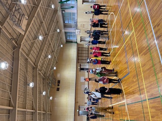 あいにくの雨天のため体育館内で「ボーイスカウト日進第1団」の