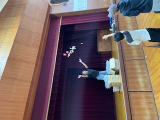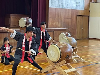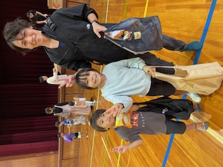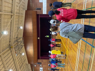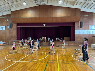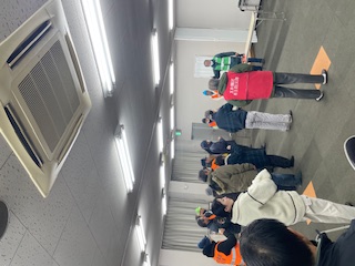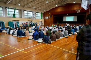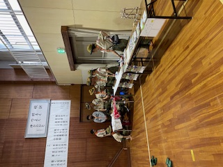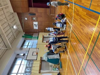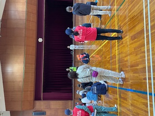 あいにくの雨天のため体育館内で「ボーイスカウト日進第1団」の